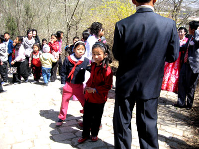 URSULA COMPLAINED to our guides (at all times, we had two “permanent” guides – one walking behind us and one upfront – and additional a local guide on site wherever we stopped) that the local female guide in Sariwon City made us look like foreign monsters when she interfered and finally stopped the two girls from dancing and their parents from singing and clapping.