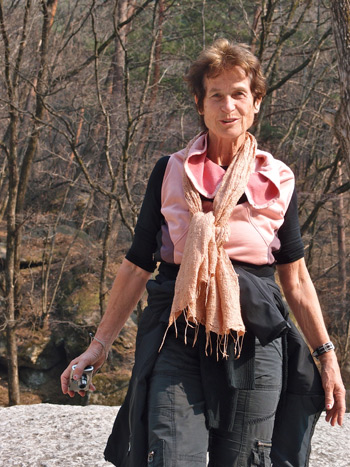 The hills of Mt Myoyang are steep rugged rocks and if we wander from the path it’s wilderness all around us. Deep ravines cut into huge elephant type rock formations we cross the deep ravines on small swing bridges.