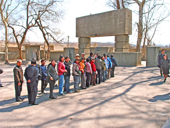Ursula in front of the North Korean version of the final armistice treaty which was signed on 27 July 1953. The text goes like this: “On July 27 1953, the American imperialists got down on their knees in front of the heroic North Korean people and signed here the ceasefire for the war they had provoked.“
